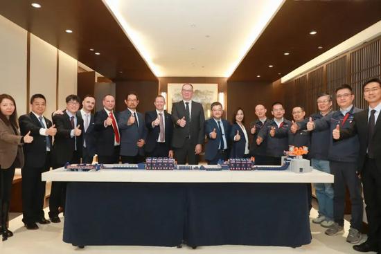 隨后,雙方進行了晉鋼ESP產線工業4.0 簽約,并在ESP產線模型前合影留念。