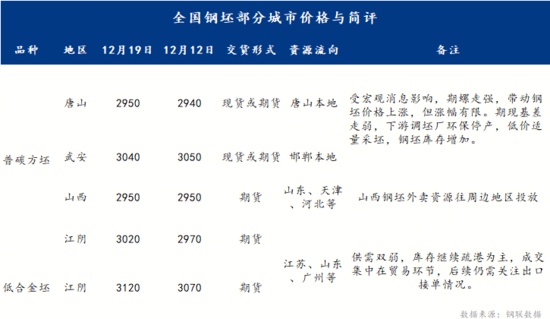 表-1 全國鋼坯部分城市價格(單位:元/噸)