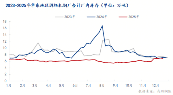 圖-5華東地區(qū)調(diào)坯軋材合計廠內(nèi)庫存圖