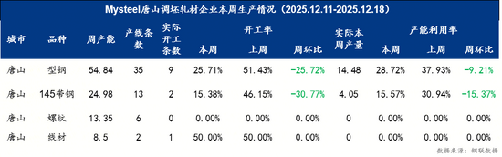 表-2 唐山調(diào)坯軋材企業(yè)本周生產(chǎn)情況