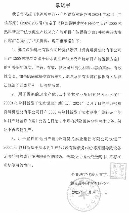 彝良晨獅建材有限公司日產3000噸熟料新型干法水泥生產線補充產能項目產能置換方案