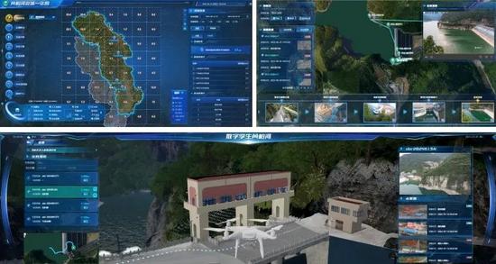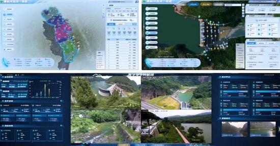 建成“天空地水工”感知體系,實現流域“可視、可知、可控”。流域按每16平方千米控制面積標準,建成了56個雨量監測站,20座水庫及河道重點區域建成了32個水位站、7處流量站,構成水文要素監測網;通過216路視頻監控站點及180°鷹眼攝像頭組成了空中立體監控網;通過無人機、氣象衛星與衛星遙感構建天空預測網,通過無人船、GNSS+測量機器人、大壩監測設施組成地面感知網,各類設備均實現4G/5G+北斗雙模傳輸,基于實時監測,遙感影像、高程、傾斜攝影、水下地形等空間數據,以及工程BIM模型,構建實時動態、虛實結合、多維聯動的流域實景動態一張圖,基本實現了流域遠程監控、遠程操作,“一屏控流域”的信息化管理目標。